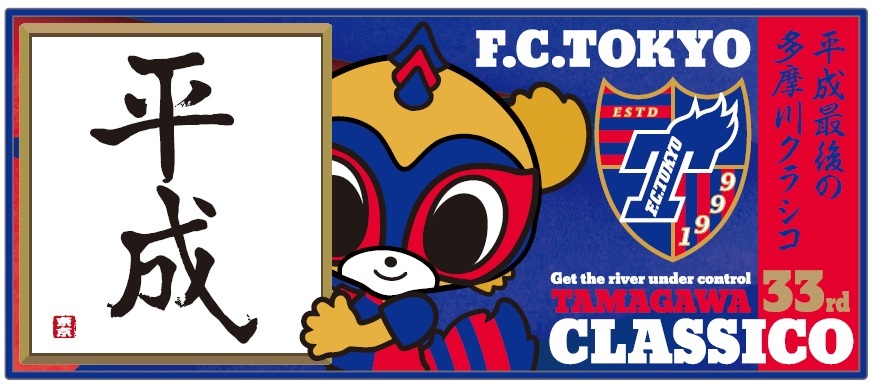 計33回の戦いを繰り広げた多摩川クラシコ。ついに「平成最後」となる多摩川クラシコを記念して限定コラボタオルを製作。ふろん太と東京ドロンパが「平成」の文字を持ったまさに平成記念グッズ。お互いのタオルマフラーを合わせて飾るのもオススメです!