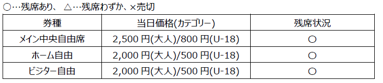 ※メイン中央自由席は予定枚数に達し次第、予告なく当日券販売を終了する場合がございますので、あらかじめご了承ください。