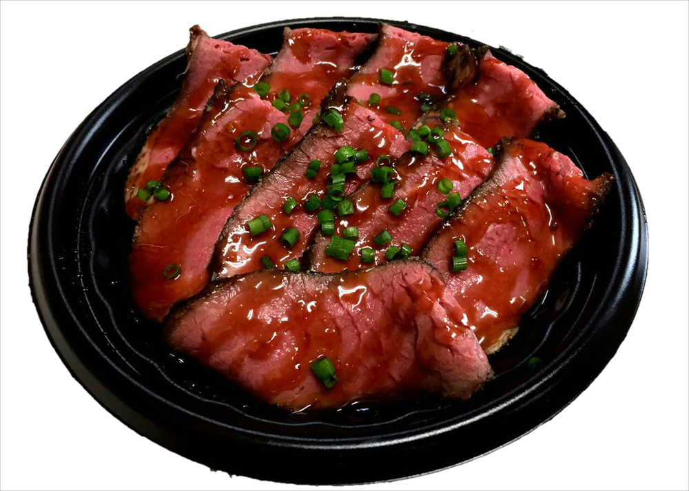 柔らかいローストビーフに味わい深い秘伝のにんにく醤油ダレが美味しさを引き立てます。当店一番人気のグルメです。