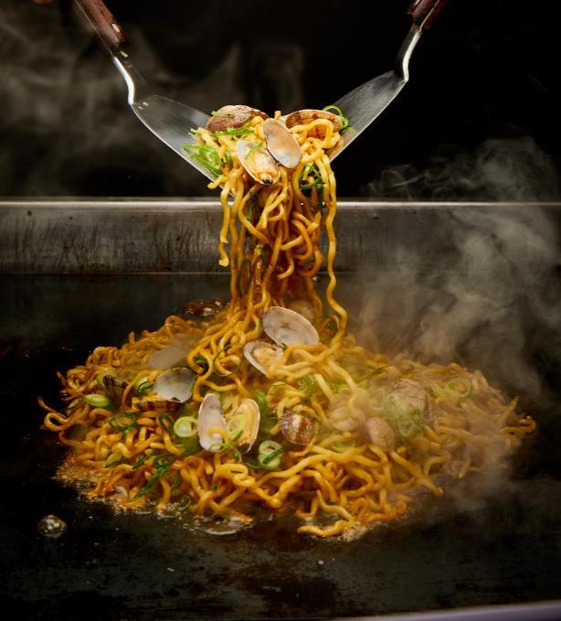 薫り高いバターの風味と江戸前醤油の香味が重なる焦がしバター醤油に江戸食材の定番、出汁の利いたあさりとシャキシャキねぎが入った「大江戸焼きそば」。