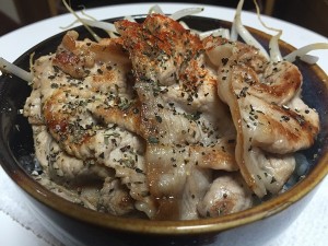 (16)スモークチキン・・・500円 東京Eマークの塩「海の精・干し塩」と東京Eマークの「生しぼり醤油」を使ったスモークチキンです。 |
