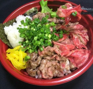 (9)江戸甘味噌ダレ牛タン丼・・・800円 東京Eマークおの「あぶまた味噌」で江戸甘味噌本来の甘みを生かした味噌ダレは、牛タンとの相性抜群です。 |