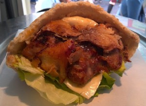 (7)オリジナルケバブ・・・600円 東京Eマークのソースをブレンドしたオリジナルソースで食べるケバブです。 |