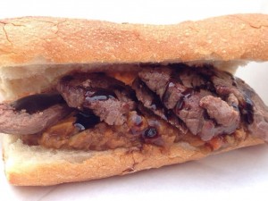 赤身が多くヘルシーなジビエ(狩猟によって、食材として捕獲された野生の鳥獣肉)料理の中から、鹿肉のステーキサンドをご用意しました。いろいろな意味で今シーズンを占うこと間違いなし!?