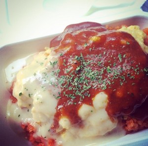 東京オムレツ・・・600円~700円 あっさりケチャップ風味のチキンライスにふわとろオムレツをのせました。ラインナップよりソースをおひとつお選びください。 |