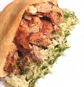 タレに染み込ませた鶏肉を焼き上げ、ピタパンに挟んだスタジアムグルメの代表格。各種ソースを選んでご賞味ください。 |