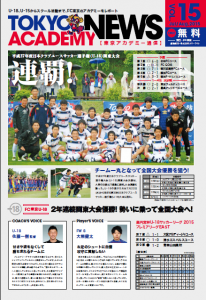 U-18、U-15深川、U-15むさしそしてスクール、普及やホームタウンなどの情報を掲載した『東京アカデミー通信』Vol.15を発行いたします。下記会場にて配布いたしますので、ぜひご覧ください。