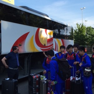 ミラノ空港に無事到着後、バスにて宿舎へ移動。ホテルでは大会に参加する他国の選手やマスコミに囲まれ自然と選手たちも笑顔になり疲れた様子は感じません。