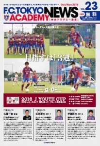 U-18、U-15深川、U-15むさしそしてスクール、普及やホームタウンなどの情報を掲載した『東京アカデミー通信』Vol.23を発行いたします。下記会場にて配布いたしますので、ぜひご覧ください。