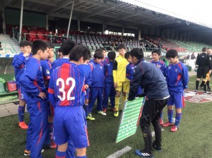 ハーフタイムには前半に感じたことを選手同士で伝え合い共有。