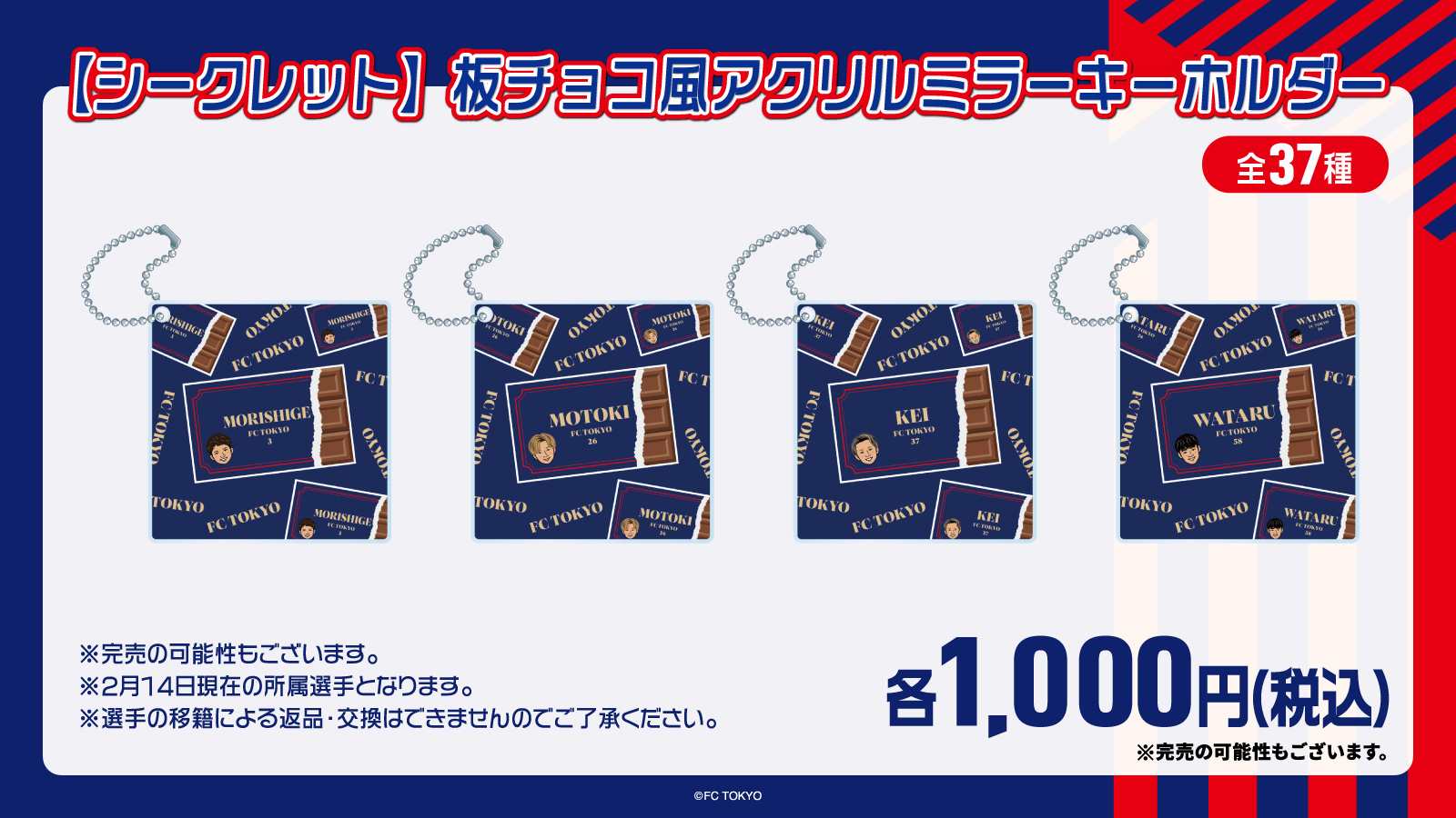 ※プレーヤーズアクリルキーホルダーの#31 小林天選手は、撮影の都合上販売を2月28日(土)柏レイソル戦での販売を予定しております。