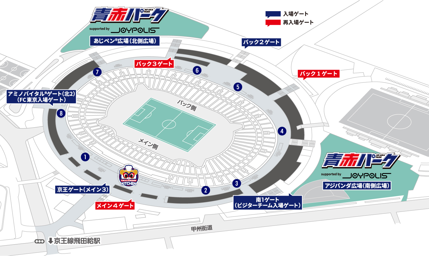 4月5日(日) 明治安田J1百年構想リーグ 第9節 vs FC町田ゼルビア(15:00キックオフ/味の素スタジアム)の、青赤パーク supported by ジョイポリス(場外)、出張!! 青赤パーク supported by ジョイポリス、スタジアム内コンコース(場内)売店にて販売する飲食情報をお知らせします。