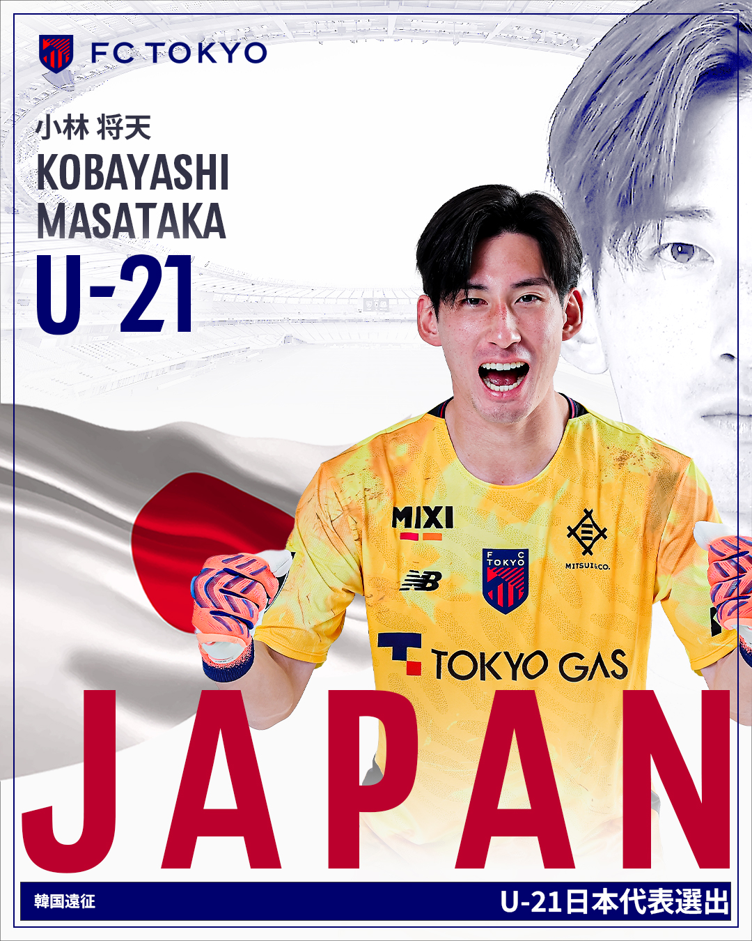 小林将天選手 U-21日本代表 韓国遠征メンバー選出のお知らせ