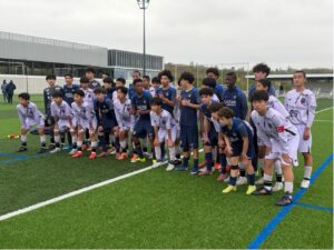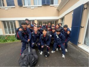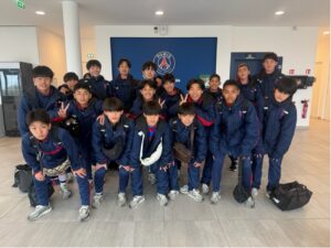 試合結果は悔しいものとなりましたが、遠征初戦と比べると随所に気持ちのこもったプレーが増え、選手たちの姿勢や意識の変化をはっきりと感じることができました。試合のでは、PSGの高い技術,判断を伴ったビルドアップに対しても臆することなく、前線から積極的にプレッシャーをかけ、粘り強く食らいつく場面が多く見られました。