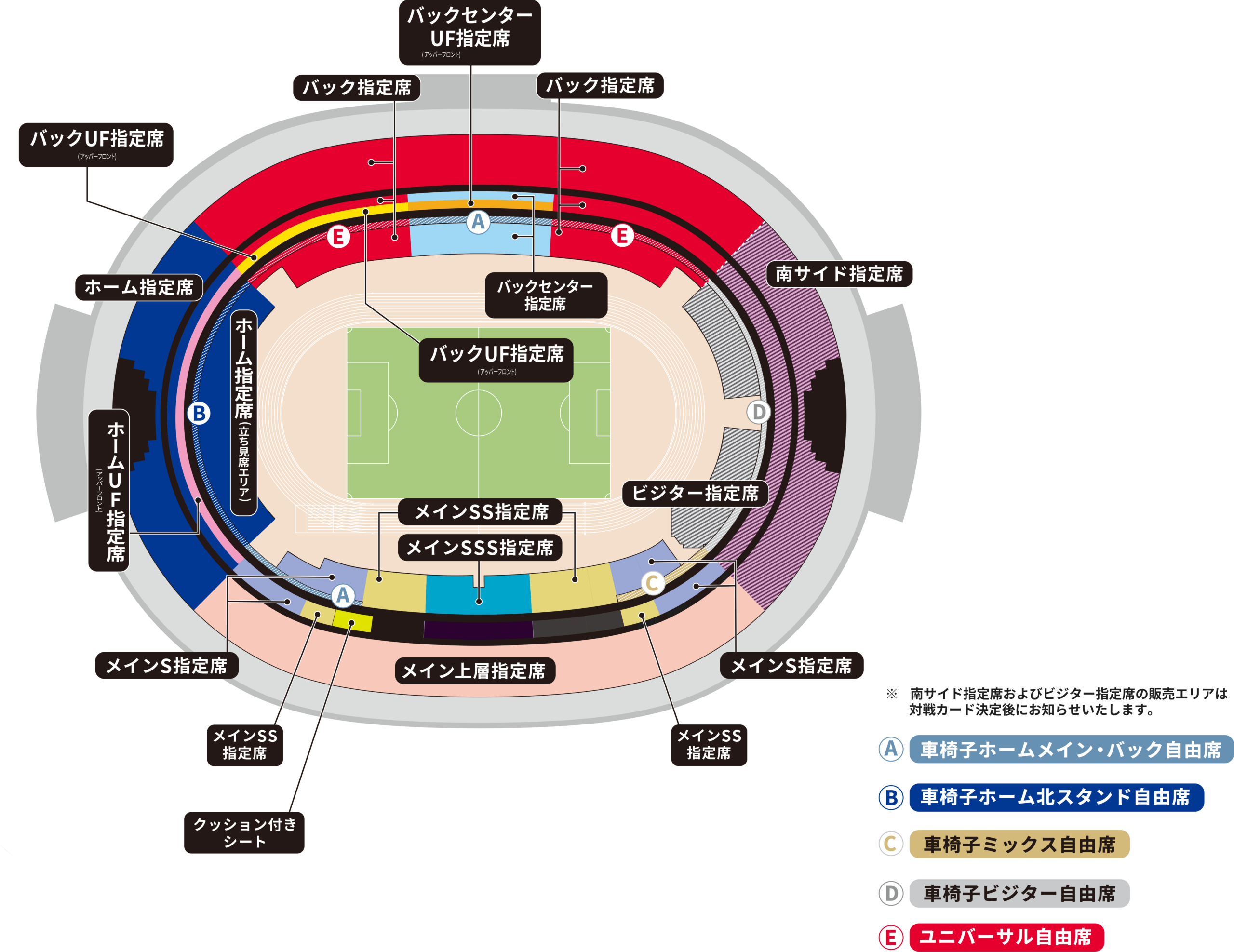 ※南サイド指定席およびビジター指定席は対戦カード決定後に販売エリアをお知らせします。
