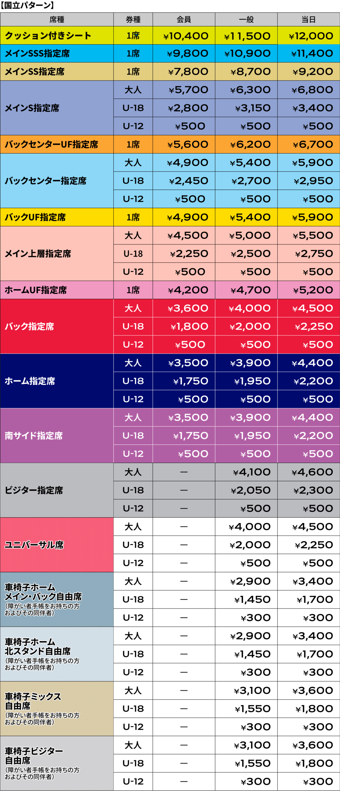 ※本試合はMUFGスタジアムでの開催となり、席割・チケット価格等が味の素スタジアム開催時とは異なります。なお、運営の観点から『全席指定席』となります。予めご了承下さい。