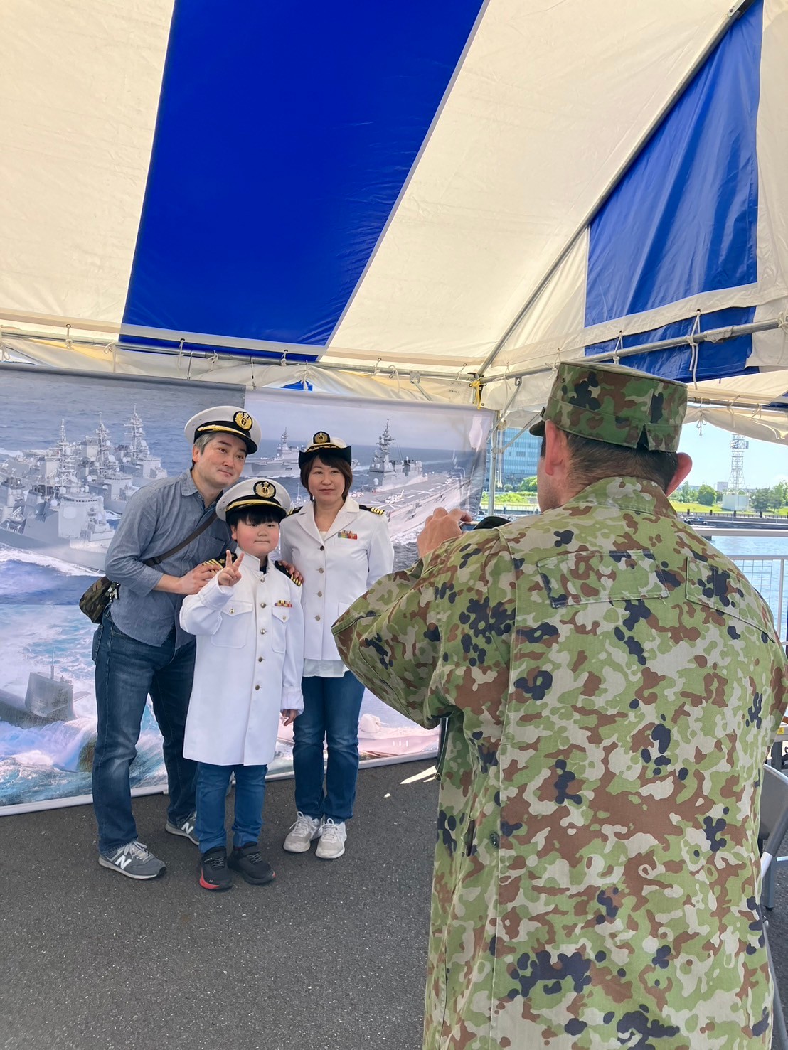 陸海空それぞれのタペストリーを背景に、親子で写真撮影をお楽しみいただけます。