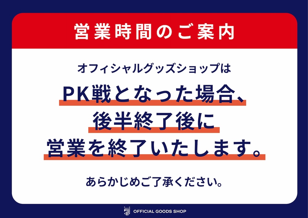 ※この試合は【メイン1ゲート場外グッズ売店】は、キックオフ3時間前からの販売となりますので、お間違いのないようお気をつけください。
