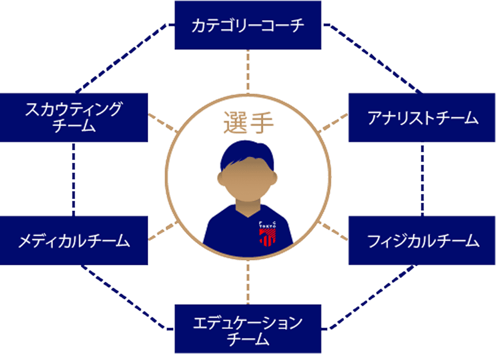 O FC Tokyo oferece um sistema organizacional de desenvolvimento e suporte individual aos jogadores para formar atletas que possam atuar na equipe principal e também se destacar na sociedade.