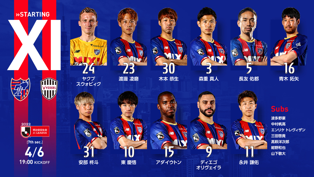 O calendário já avançou para abril, mas o jogo contra o Vissel Kobe nesta rodada foi apenas o segundo jogo em casa do FC Tokyo na temporada 2022 da J1 League. Foi o segundo de uma sequência de jogos em três dias contra três clubes que participam da Liga dos Campeões da AFC (ACL). Após a derrota por um gol na partida anterior contra o Yokohama F.Marinos, o FC Tokyo quer mostrar o crescimento da equipe e conquistar os 3 pontos em casa, no Ajinomoto Stadium.