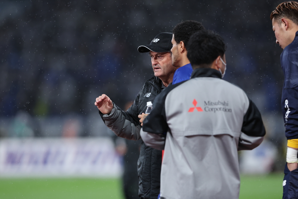 A, claro, temos a opção de alinhar três jogadores no futuro. E vi muitos comentários dizendo que alinhar três jogadores reduziria a pressão defensiva vinda da frente, mas eu não penso assim. Quanto aos múltiplos gols sofridos, não acredito que seja por causa da defesa que começa na linha de frente não estar funcionando. O importante é encontrar uma combinação que aproveite bem as características de cada jogador. Além disso, eu não dou importância à nacionalidade. Isso foi comprovado nas duas temporadas em que estive no comando em Niigata. Não é porque são jogadores brasileiros que devemos alinhar três deles.