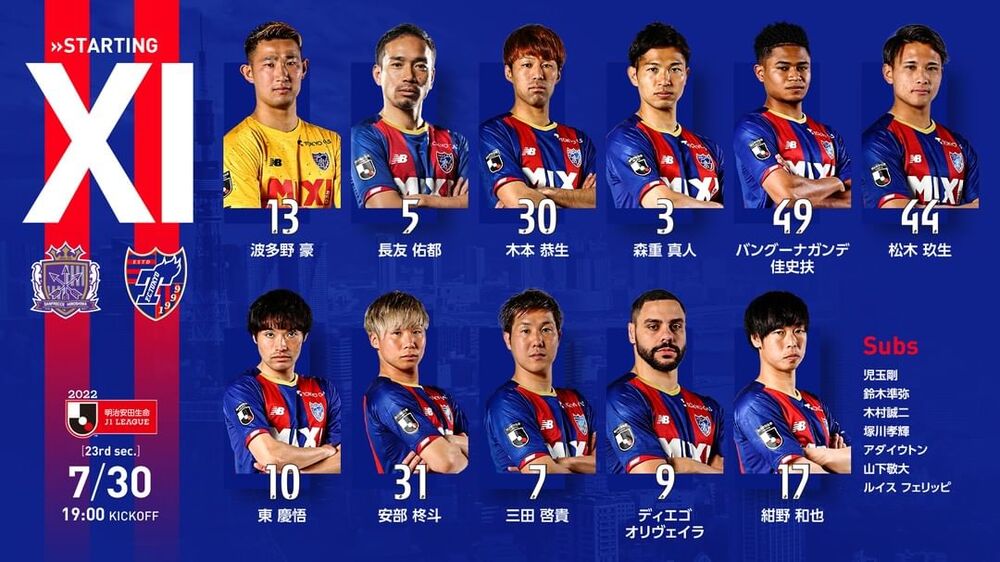 Em Tóquio, Go HATANO fez sua primeira aparição na liga, e Hirotaka MITA, que geralmente jogava como meio-campista central, foi escalado como titular na posição de ponta. Os três novos contratados Luiz PHELLYPE, Koki TSUKAGAWA e Seiji KIMURA foram incluídos na lista de jogadores para a partida.