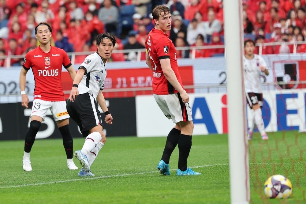 Urawa avança corajosamente desde o início, movimentando-se e circulando a bola para pressionar. Resistindo a isso com todos os jogadores, a equipe atrai o fluxo do jogo com grandes mudanças de lado a partir da linha defensiva e avança para o campo do Urawa.