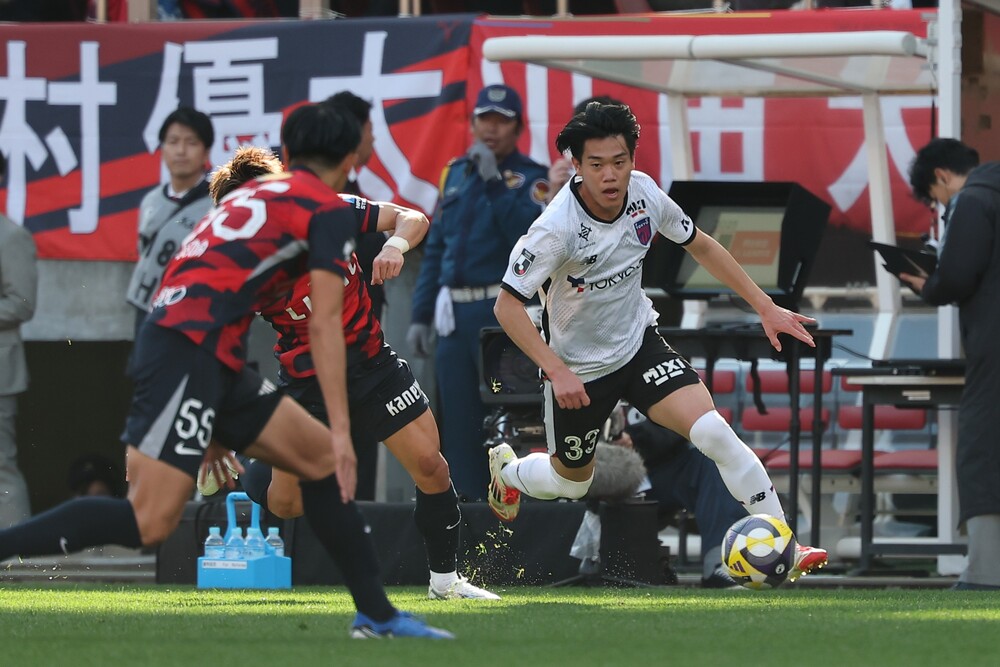E aos 11 minutos do mesmo tempo, Marcelo RYAN disputou a bola com o goleiro adversário, e a bola sobrou na frente de Kota TAWARATSUMIDA. À sua frente, um gol vazio. No entanto, o chute com o pé esquerdo não acertou o alvo, e ele mordeu o lábio.