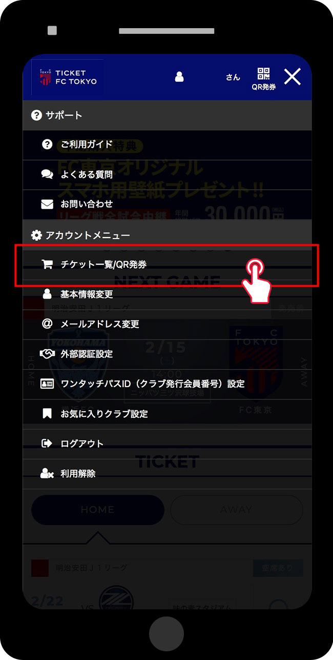 【Lista de ingressos / Emissão de QR】 do FC Tokyo -