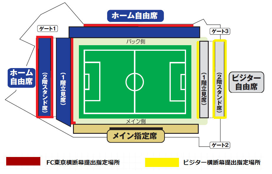 ※Pessoas que utilizam os assentos para cadeirantes do lado do FC Tokyo devem se dirigir próximo à bilheteria no dia do evento ou próximo ao Portão 1, e pessoas que utilizam os assentos para cadeirantes do lado do Gamba Osaka devem se dirigir próximo ao Portão 2, por favor, informe a um funcionário próximo. Nós iremos orientá-lo (do lado do Gamba Osaka, somente pessoas que utilizam os assentos para cadeirantes podem entrar pelo Portão 2).