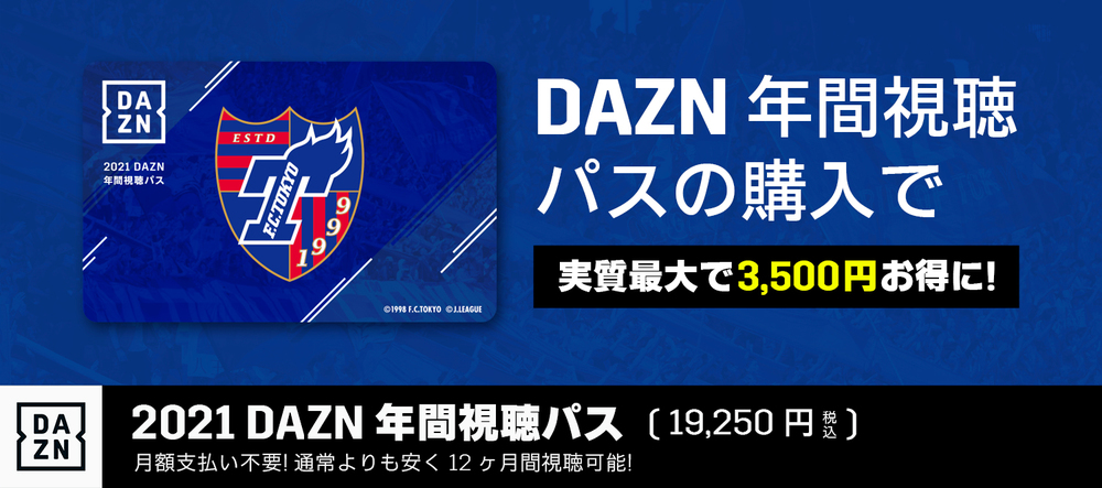 Uma parte do valor da compra do passe anual DAZN será revertida para o clube como custo de fortalecimento, permitindo que você apoie o FC Tokyo através do DAZN.