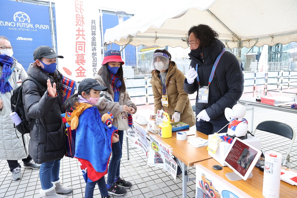Nesta campanha de arrecadação de fundos, contamos com a colaboração do OriHime Lab, e o OriHime junto com Naohiro ISHIKAWA, comunicador do clube, também participaram.
