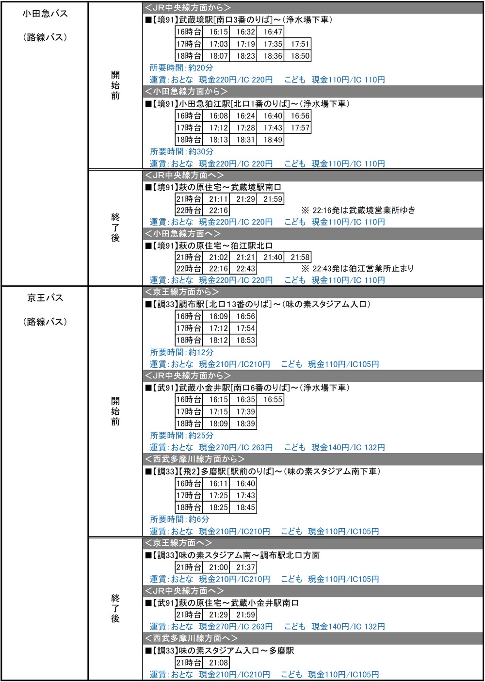 27 de junho (Dom) 2021 Meiji Yasuda Life Insurance Company J1 League Rodada 20 vs Oita Trinita (Início às 19:00 / Ajinomoto Stadium) Informações sobre o serviço de ônibus shuttle e ônibus de linha operados neste dia.