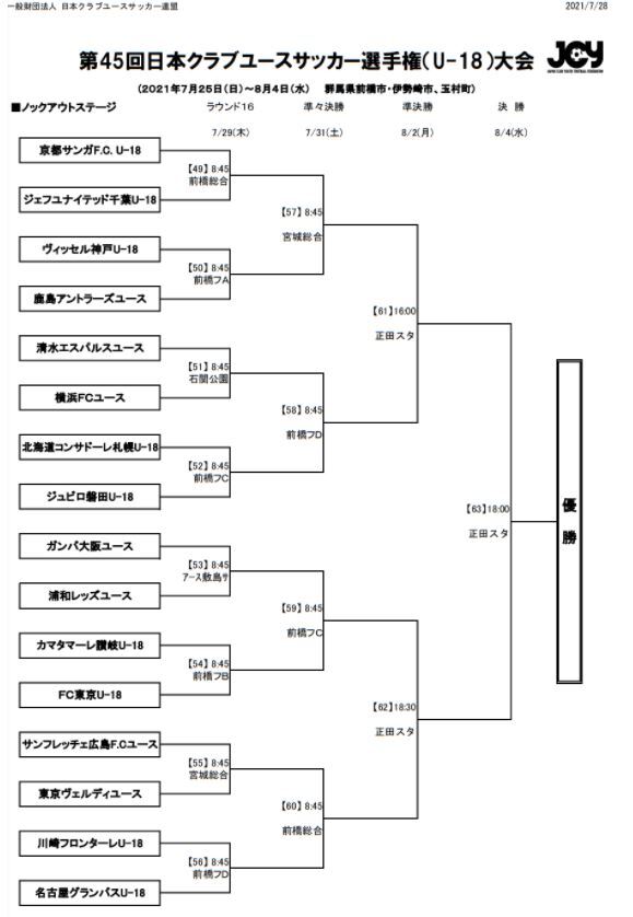 FC Tokyo U-18 participará do "45º Campeonato Japonês de Clubes Juvenis de Futebol (U-18)", e gostaríamos de informar que o resumo do torneio foi decidido.