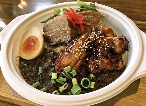 ・Curry seco defumado com roast beef em dobro e frango picante 1.100 ienes