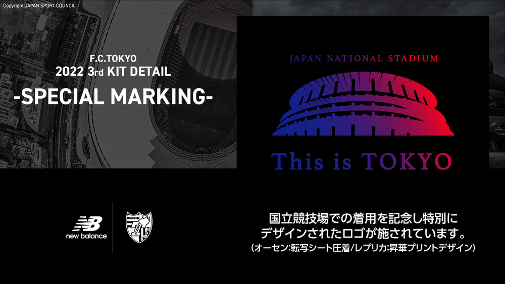 Além disso, para comemorar o uso no Japan National Stadium, as palavras "JAPAN NATIONAL STADIUM" e o Japan National Stadium são representados com um gradiente em azul e vermelho, as cores do clube. O Japan National Stadium está localizado na capital Tóquio, e a história e os sentimentos importantes que os fãs, apoiadores e o clube compartilharam neste local foram incorporados nas palavras "This is TOKYO". Este design especial do Japan National Stadium foi aplicado ao terceiro uniforme.