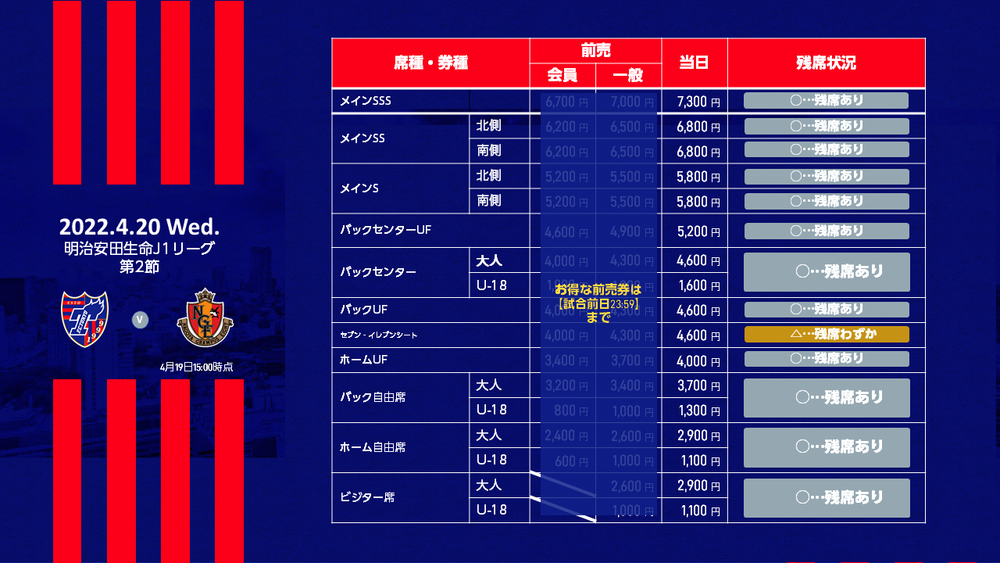 Venda de ingressos no dia para a 2ª rodada da Liga Meiji Yasuda Life Insurance Company J1 2022 FC Tokyo vs Nagoya Grampus (início às 19:00 / Ajinomoto Stadium), conforme informado abaixo.