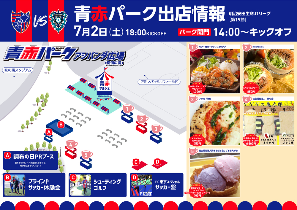 2 de julho (Sáb) 2022 Meiji Yasuda Life Insurance Company J1 League Rodada 19 vs Avispa Fukuoka (kickoff às 18:00 / Ajinomoto Stadium) realizaremos o AO-AKA PARK!