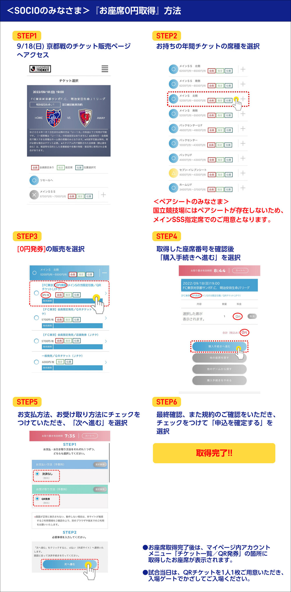 Por favor, obtenha seu "Assento Gratuito" no Ticket FC Tokyo. A emissão antecipada do ingresso é obrigatória, e a entrada com o cartão SOCIO não será permitida, portanto, agradecemos sua compreensão.