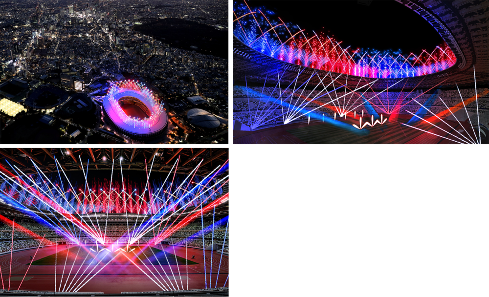 Ao mesmo tempo em que são lançados cerca de 1500 fogos de artifício especiais que fazem uma volta completa de 360 graus sobre o telhado do estádio, são realizadas apresentações de iluminação com 28 moving lights e lasers. Além disso, nas laterais do campo, há também apresentações impressionantes com chamas.