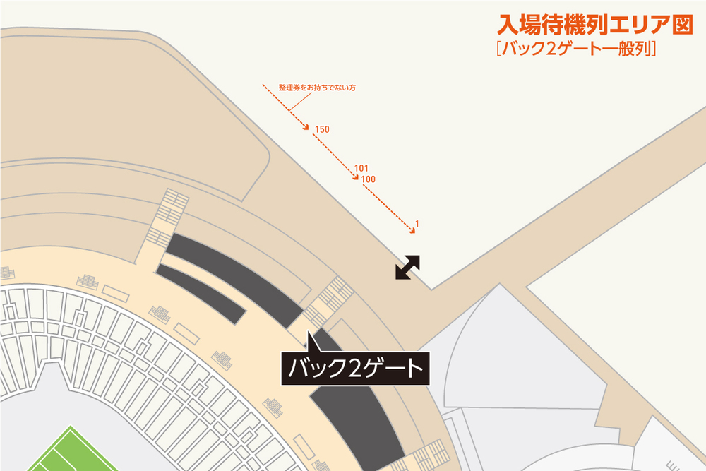 Você poderá se alinhar no final da fila a partir das 13:00 no dia do jogo. Após se alinhar, é possível deixar a fila temporariamente. Por favor, retorne à área da fila de espera 30 minutos antes do horário de abertura correspondente.