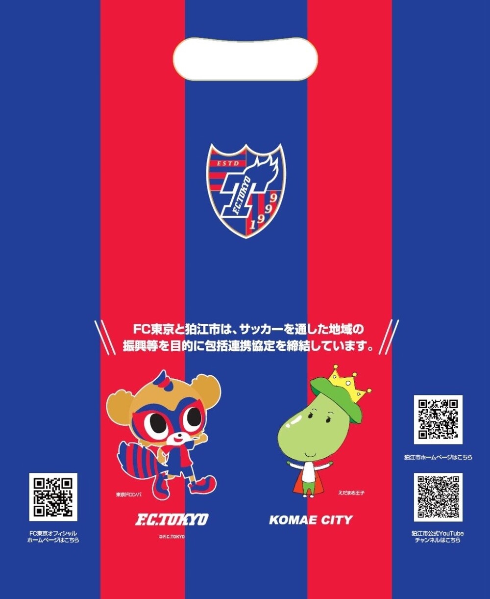 Com o objetivo de promover a região por meio do futebol, uma colaboração com a cidade de Komae, com a qual temos um acordo de cooperação abrangente, incluirá informações turísticas de Komae em uma "sacola de tecido não tecido" que será distribuída por funcionários da cidade de Komae dentro do AO-AKA PARK supported by TOKYO GAS.