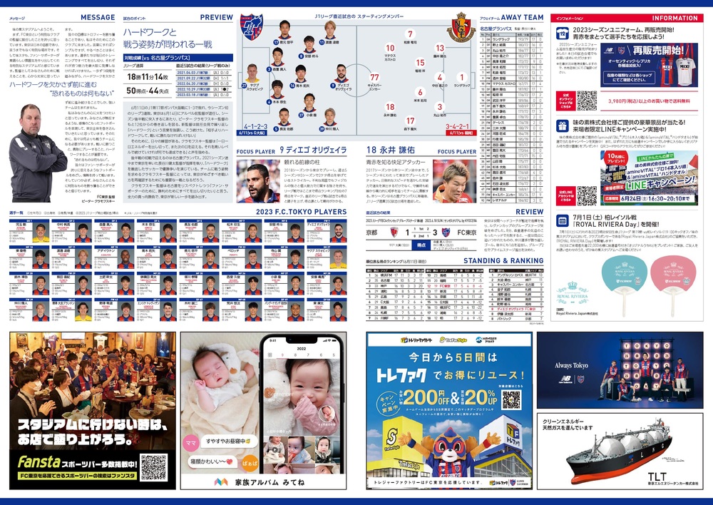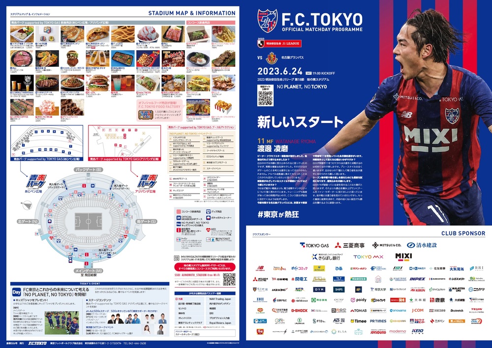 24 de junho (Sáb) 2023 Meiji Yasuda Life Insurance Company J1 League Rodada 18 vs Nagoya Grampus (Início às 19:00 / Ajinomoto Stadium) sobre o programa oficial do dia do jogo, informamos conforme abaixo.