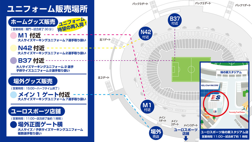 Após o término da partida vitoriosa até o fechamento, somente na loja de produtos do lado da torcida da casa dentro do estádio<br/>Após a partida vitoriosa, nas lojas dentro do estádio, ao comprar 2.000 ienes (com impostos) ou mais, você receberá 1 bilhete.