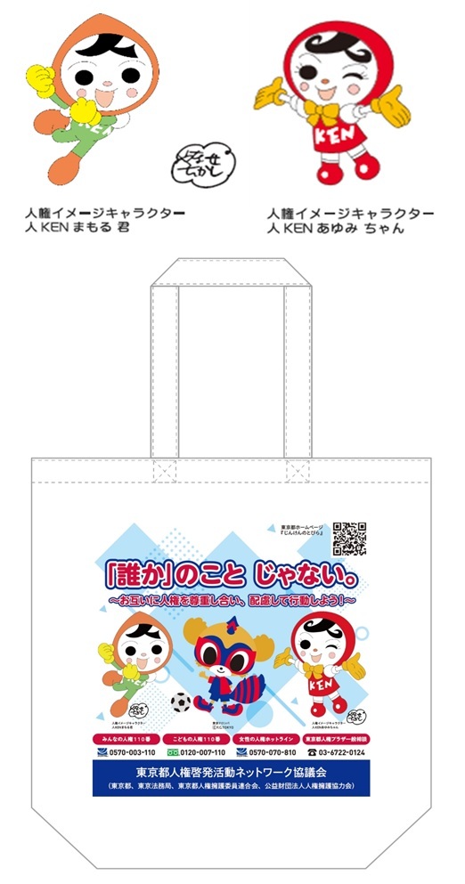 Os comitês de proteção dos direitos humanos distribuirão sacolas tote com design colaborativo com TOKYO DOROMPA, personagem de imagem dos direitos humanos do Ministério da Justiça, além de brindes para promoção da conscientização sobre direitos humanos.