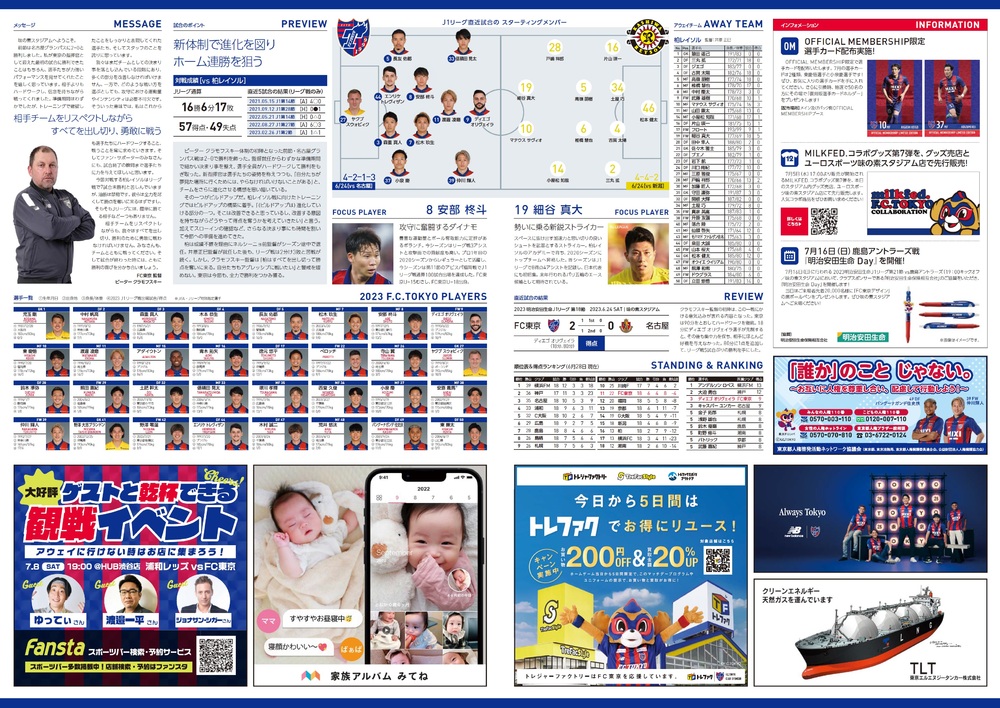 1 de julho (Sáb) 2023 Meiji Yasuda Life Insurance Company J1 League Rodada 19 vs Kashiwa Reysol (19:00 kickoff / Ajinomoto Stadium) sobre o programa oficial do dia da partida, informamos conforme abaixo.
