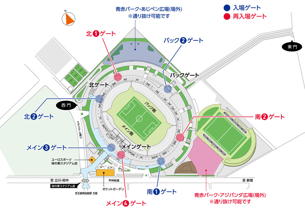 Devido à produção do evento "FIREWORKS NIGHT supported by Paidy", os portões de reentrada serão alterados. Além disso, em determinados horários, haverá áreas interditadas para passagem no corredor externo do lado principal, por favor, fique atento.