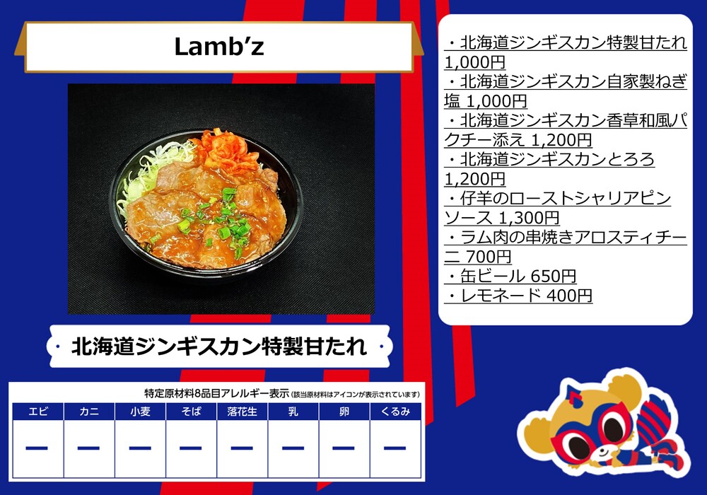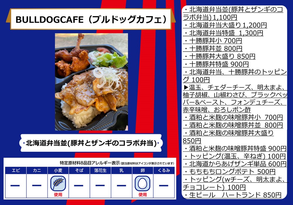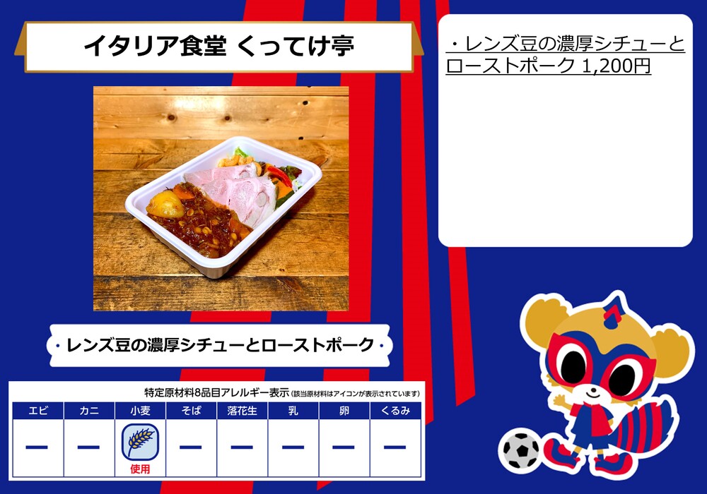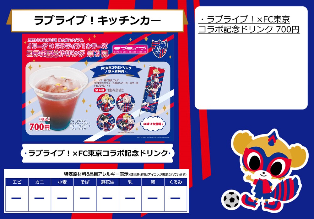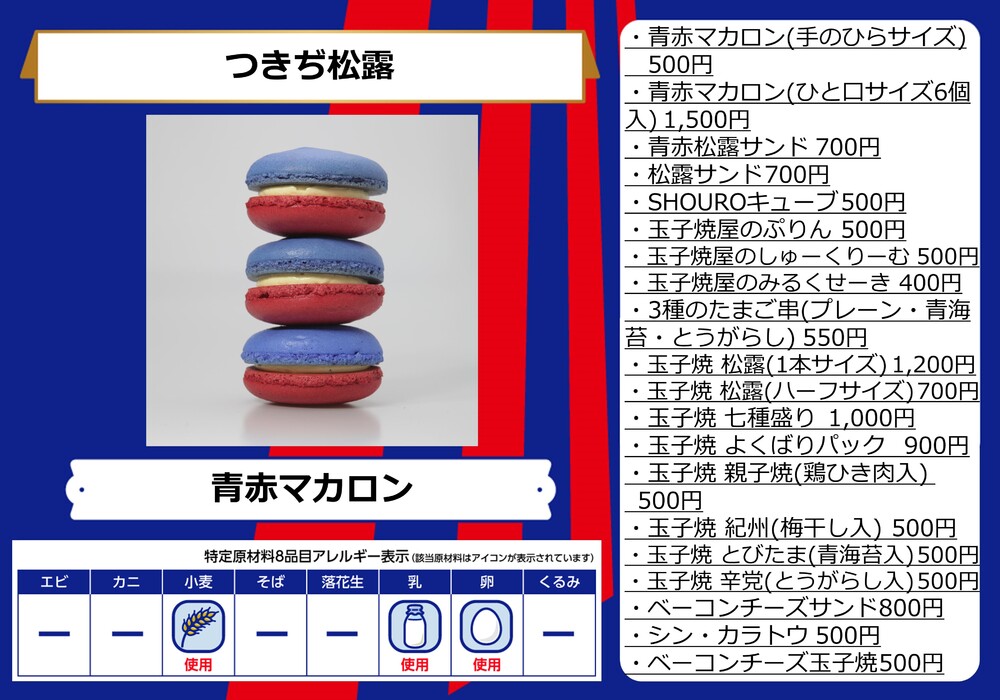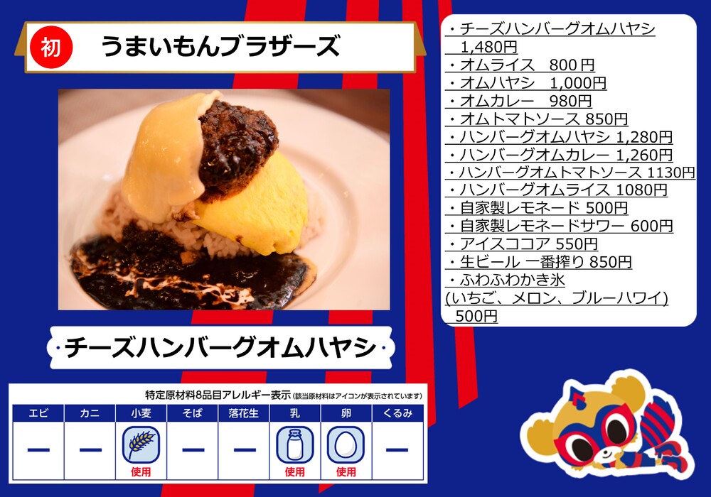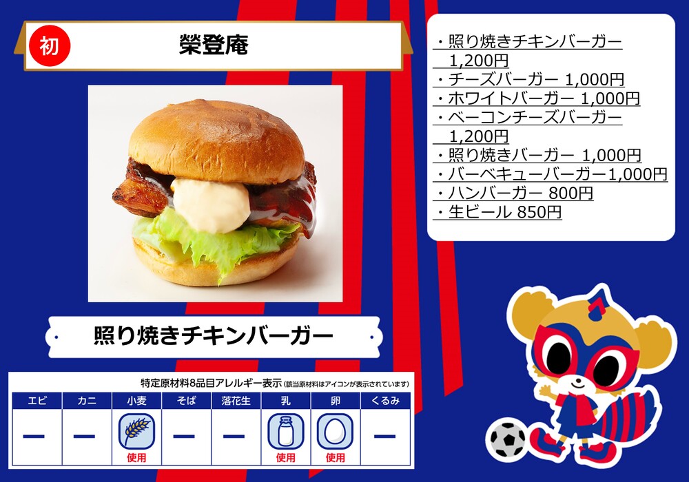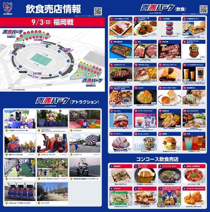 Menu de alimentos que será vendido nas lojas do AO-AKA PARK supported by TOKYO GAS (fora do estádio) e no corredor interno do estádio no dia 3 de setembro (Dom), na partida contra Avispa Fukuoka.