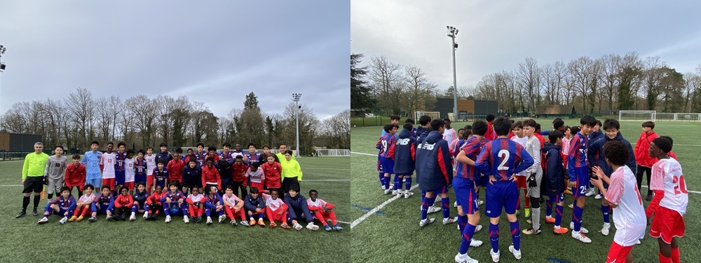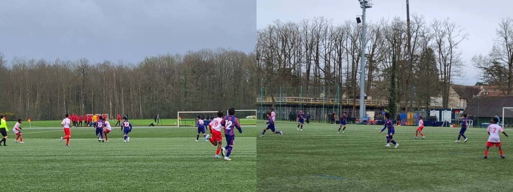 Realizamos uma partida amistosa de 35 minutos por tempo contra o Clairefontaine U14, que conta com muitos jogadores que são futuros candidatos à seleção francesa.