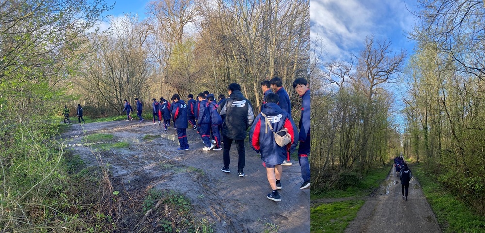 Esta manhã, fiz uma caminhada pela floresta até um hotel próximo para tomar o café da manhã.